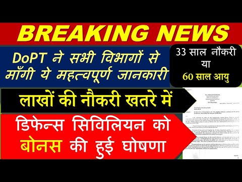 33 साल नौकरी या 60 साल आयु DoPT Order Bonus for Defence Civilians Today Latest News Hindi--- - Central Government Retirement Age 62 Latest News Today - Today 2 Latest updates for Central Government Employees: Service Policy for Central Services DOPT latest order 17/09/2019. Productivity Linked Bonus for the ...